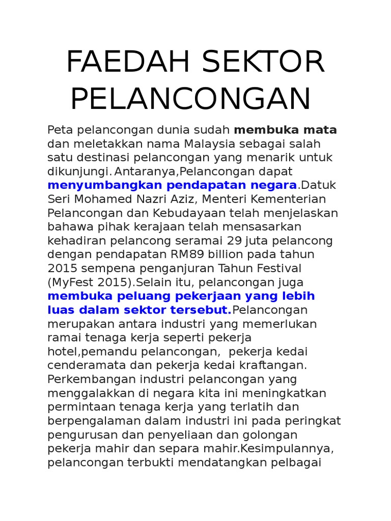 Contoh Karangan Bm Kepentingan Sektor Pelancongan Kepada Rakyat Dan Negara Wattpad
